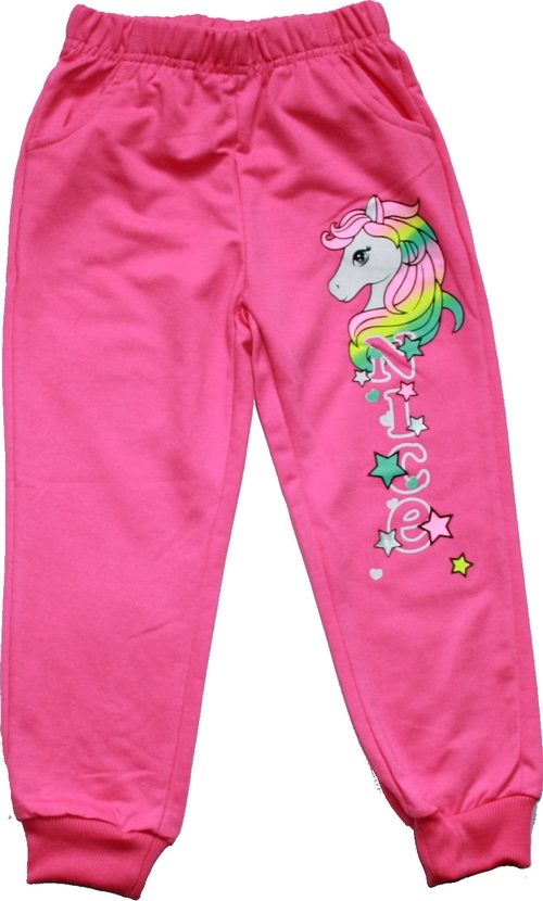 Dětské tepláky pro dívky potisk Jednorožec. Krásné z kvalitního úpletu a pěkně propracované, nechybí kapsy. Možnost využití na vycházky sport a jízdu na kole, cestu do školy, školky