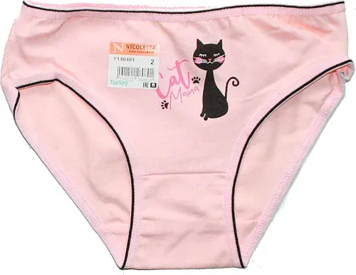 Dívčí kalhotky s potiskem na předním díle, obrázek kočičky, zadeček jednobarevný, moc krásná příjemná bavlna