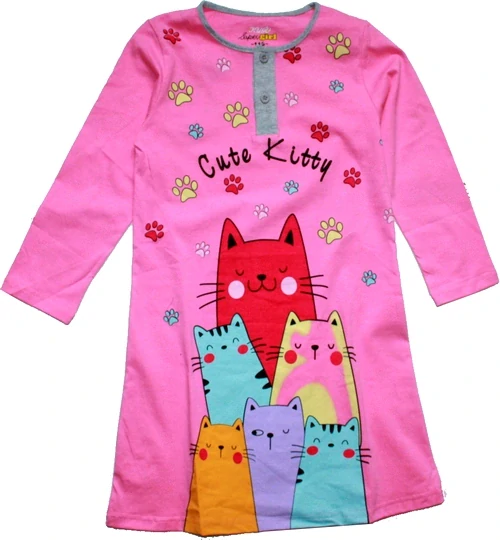 Dívčí noční košile s dlouhým rukávem s potiskem obrázku 3 kočičky. Velice krásná bavlna