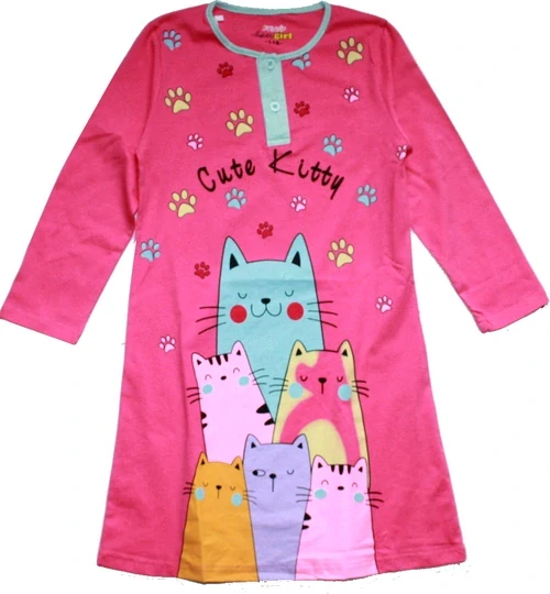 Dívčí noční košile s dlouhým rukávem s potiskem obrázku 3 kočičky. Velice krásná bavlna