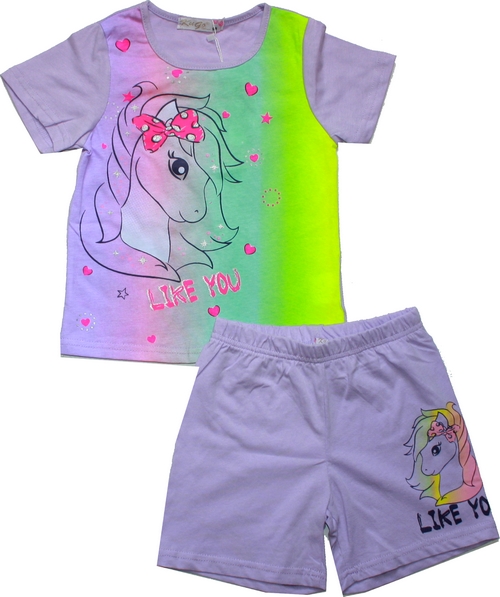Dětské oblečení. Dívčí letní pyžamo KUGO, letní komplet Jednorožec. Krásná pyžámka
