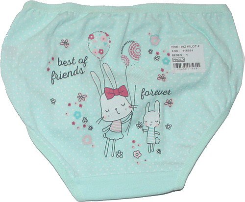 Dívčí spodní kalhotky pro malé holčičky s obrázkem na zadečku, předek jednobarevný